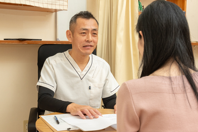 症状やお悩みなどのお話しを伺います、話せる範囲で大丈夫ですのでご安心ください