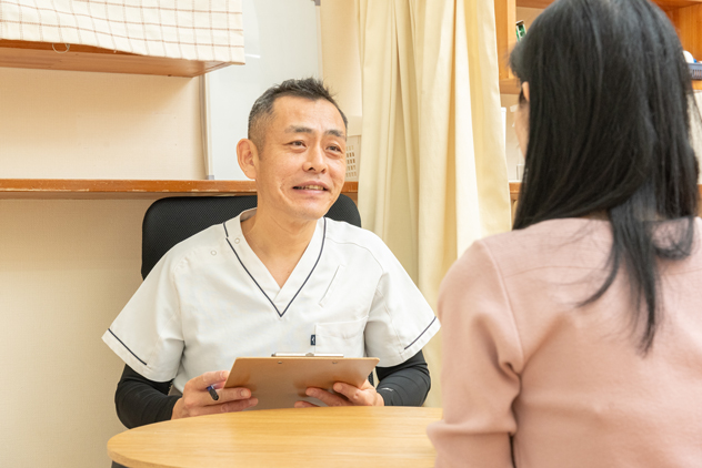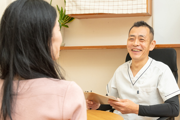日常のアドバイスや施術後のお願いなどの説明をします
