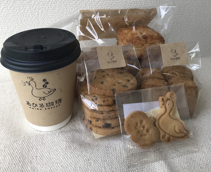 ブレンド珈琲、チョコチップ・紅茶・あひる・ハロウィンクッキー、スコーンを持ち帰りで購入しました。