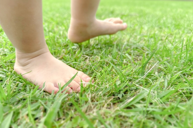 「素足」で歩いたり、足指からかかとまでを地面について「足の裏全体の感覚」を感じます。
