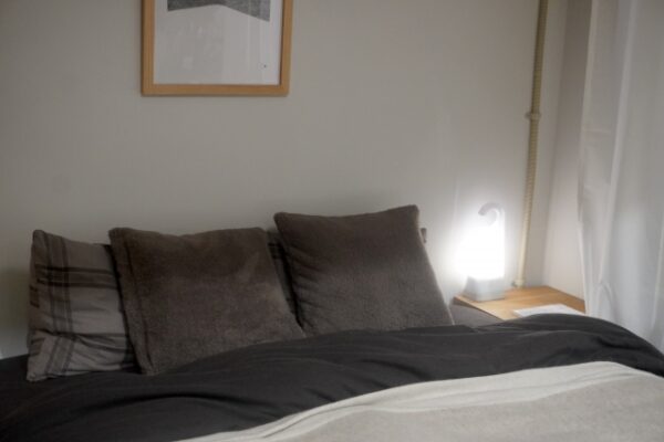 電気をつけた室内の明るさは、その約1000~10000倍にもなることがあります。眠気が少ない場合は、少しずつ照明を暗く落としていくといいでしょう。寝るときは直接光が目に入らないようにします。