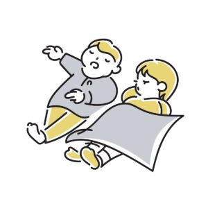 横向きや仰向けで寝る。
