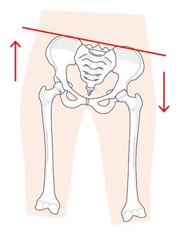外反母趾のある脚はねじれます。ねじれた脚は左右の長さが変わり、骨盤や背骨のゆがみをおこします。